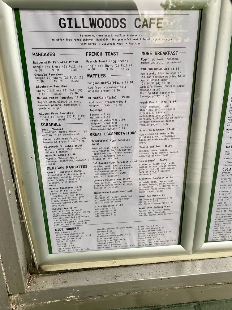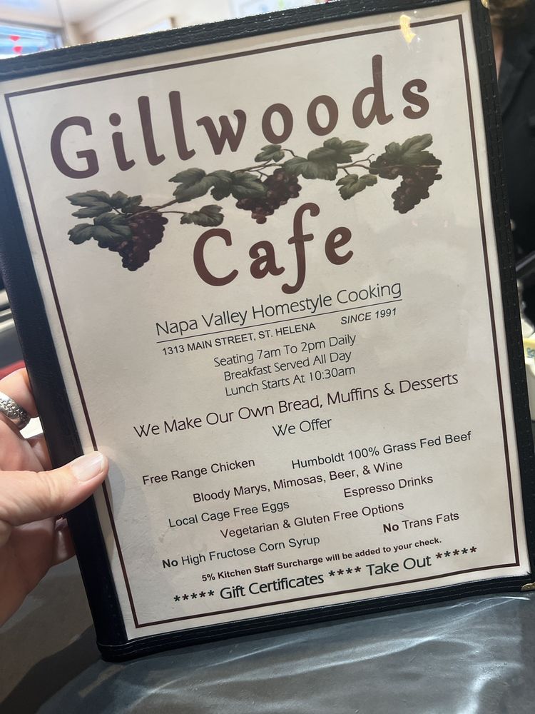 Gillwoods Cafe, located in St. Helena, CA, offers a diverse menu of New American, Coffee & Tea, Breakfast, and Brunch options. With a range of dishes like Fresh Chive Omelette, Eggs Benedict variations, Steel Cut Oats, and Gillwoods Granola, there is something for every breakfast lover. The reviews from customers rave about the delicious food, friendly service, and cozy atmosphere. A standout dish is the ricotta, orange, blueberry pancake with pecans, while the unique hash browns in long pieces add a crispy touch to the Gillwood omelette. The cafe also impresses with avocado toast, eggs benedict with tasty home fries, and a fantastic chicken Caesar salad. With fast and friendly service, Gillwoods Cafe is a must-visit for a satisfying breakfast or brunch experience.